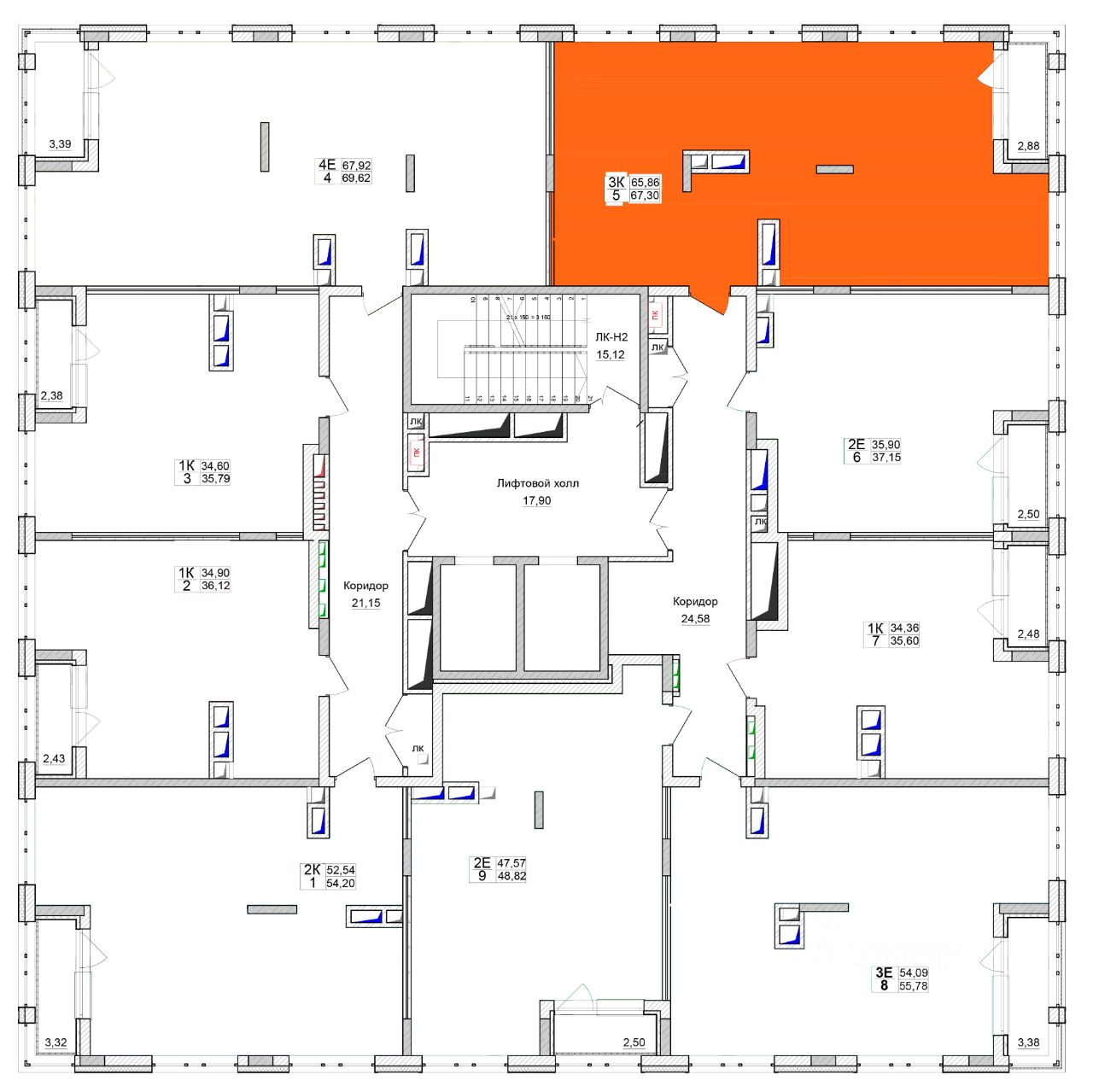 65 м² · Этаж 9 из 15