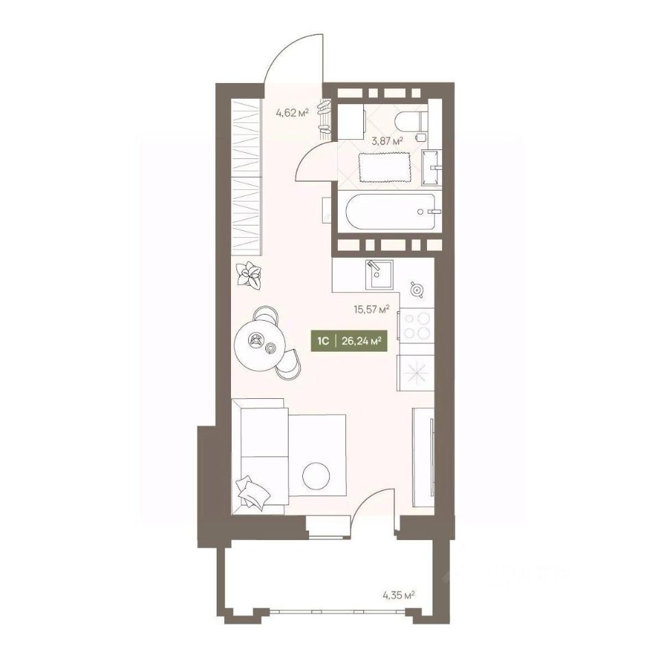 26 м² · Этаж 6 из 16