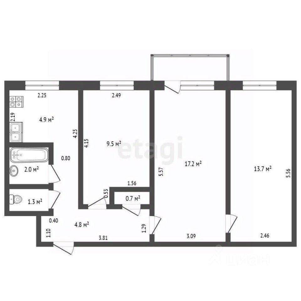 Продажа трехкомнатных квартир в Топках