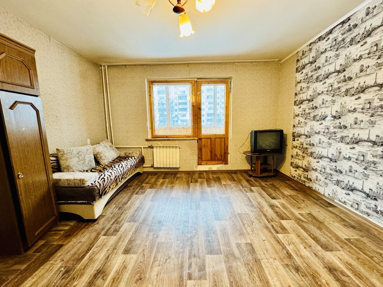 Сдается большая однокомнатная квартира 39,4 кв.м. на третьем этаже девятиэтажного дома. Редкая планировка-распашонка — окно комнаты выходит во двор, окно кухни — на улицу. В квартире выполнен косметический ремонт, квартира оснащена мебелью и техникой: Кухонный гарнитур с печью, свч и холодильником, Стиральная машина, Телевизор, Диван-кровать, Настенная вешалка в прихожей, Два шкафа. Квартира теплая, не торцевая, находится в кармане на три квартиры. Соседи взрослые, тихие и спокойные, чего просим и от квартиросъемщиков. Оплата ЖКУ — только за воду и электричество, по счетчикам. Курить в квартире запрещено, строго без животных