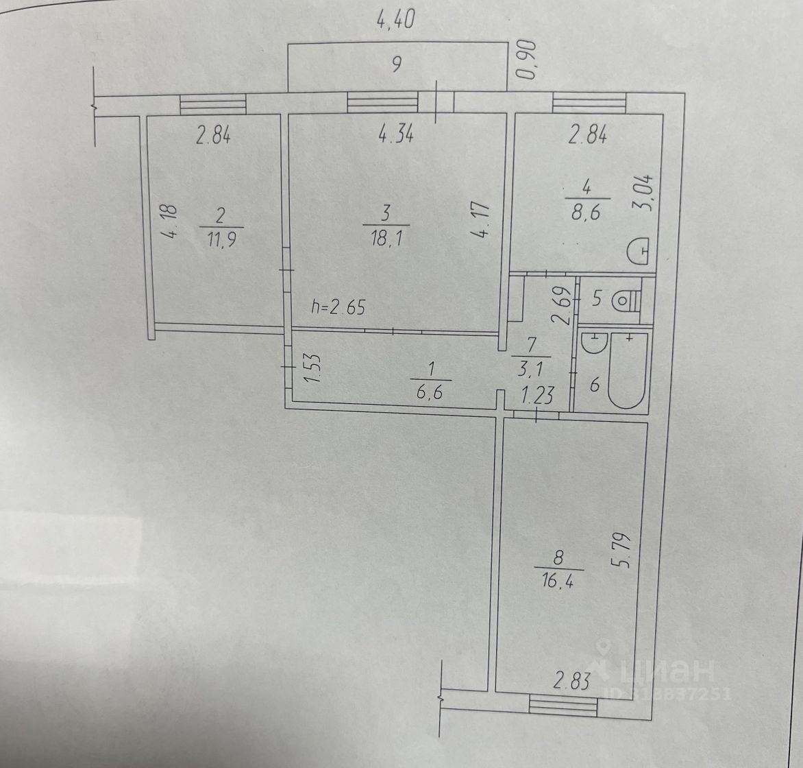 Кухня 12 квадратов , зал 18,1 , спальни 16,и 12 .
