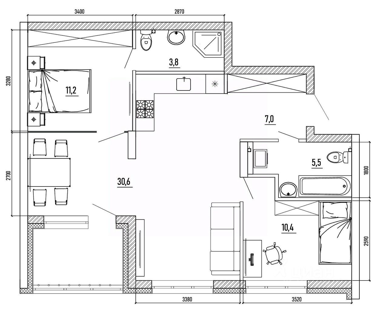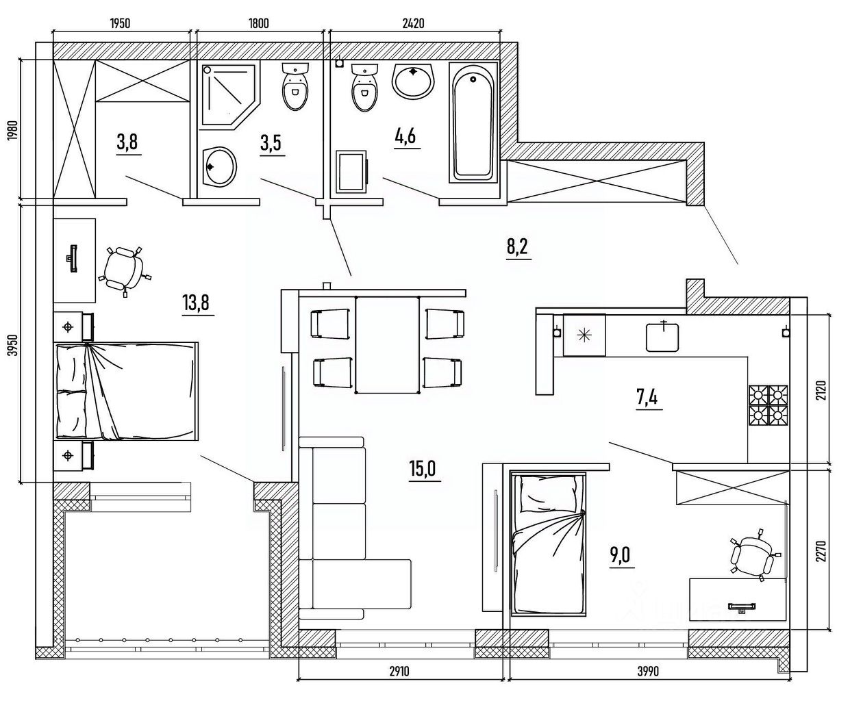 Общая площадь73,7 м2
