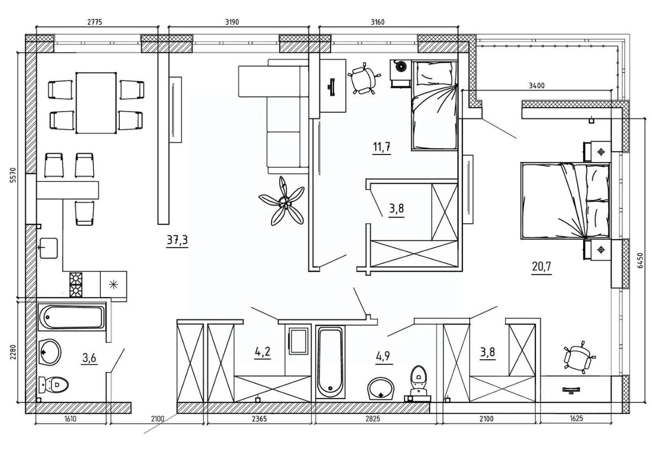 Общая площадь101,7 м2