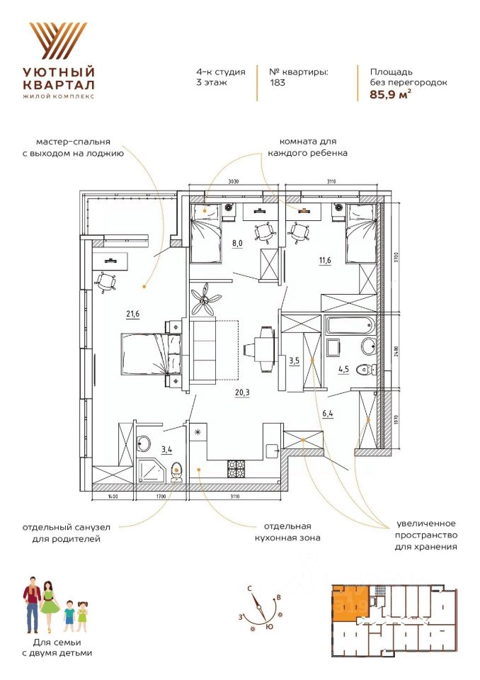 Общая площадь85,9 м2
