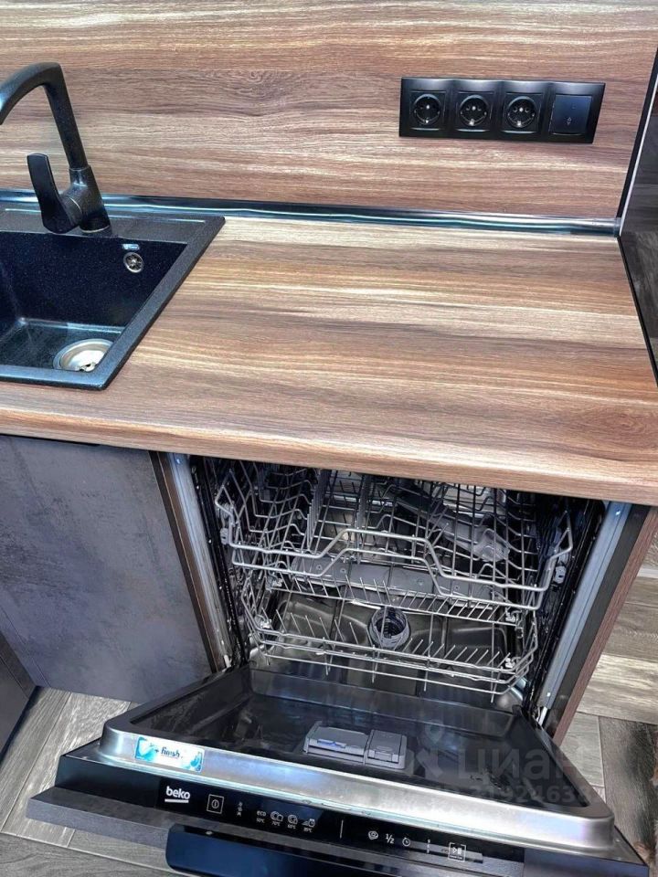 На кухне установлена ПОСУДОМОЕЧНАЯ МАШИНА забудьте о мытье гор посуды! А также варочная панель на 4 конфорки, вытяжка и духовой шкаф.