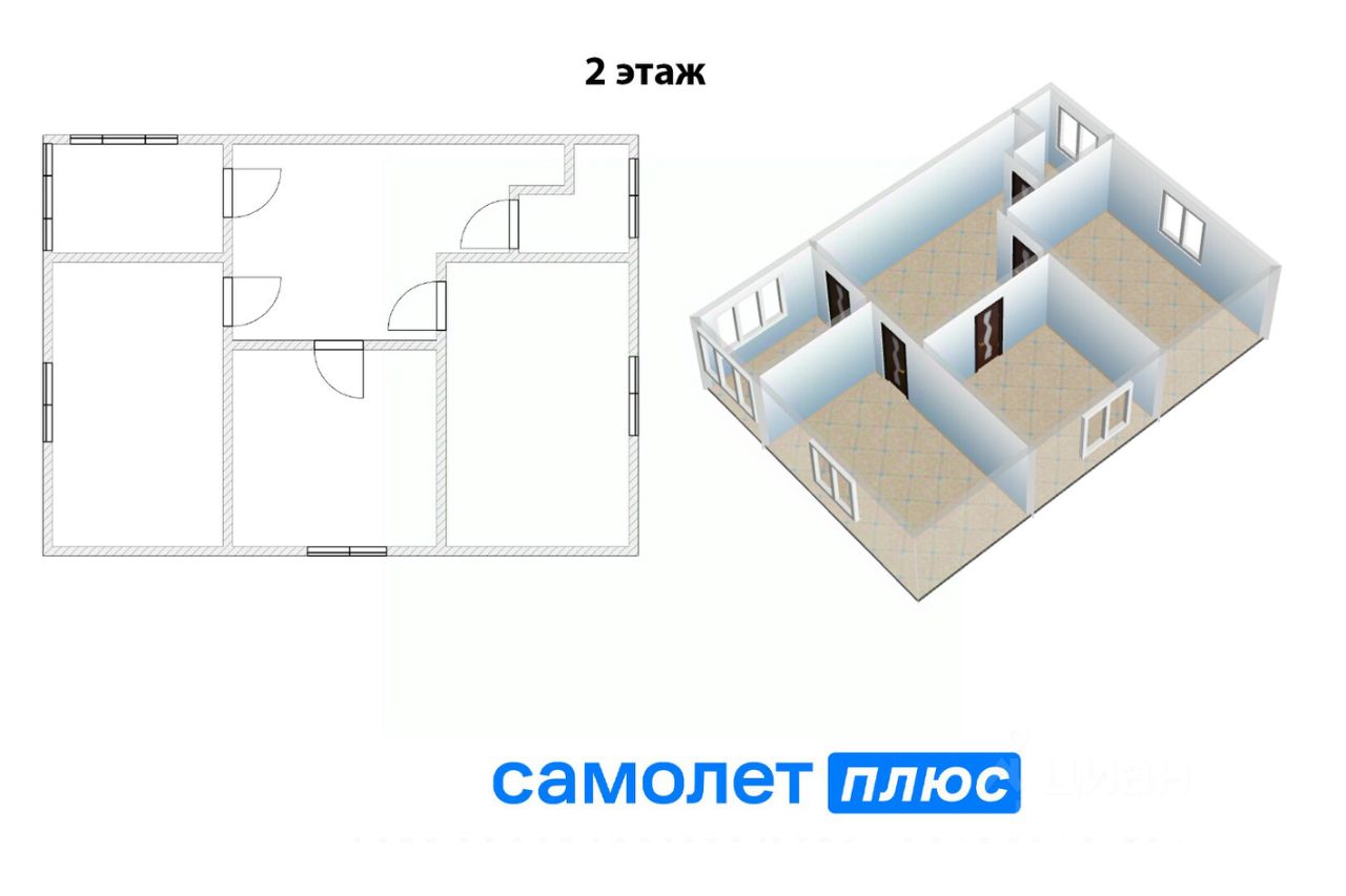 Второй этаж - три просторные спальни, санузел