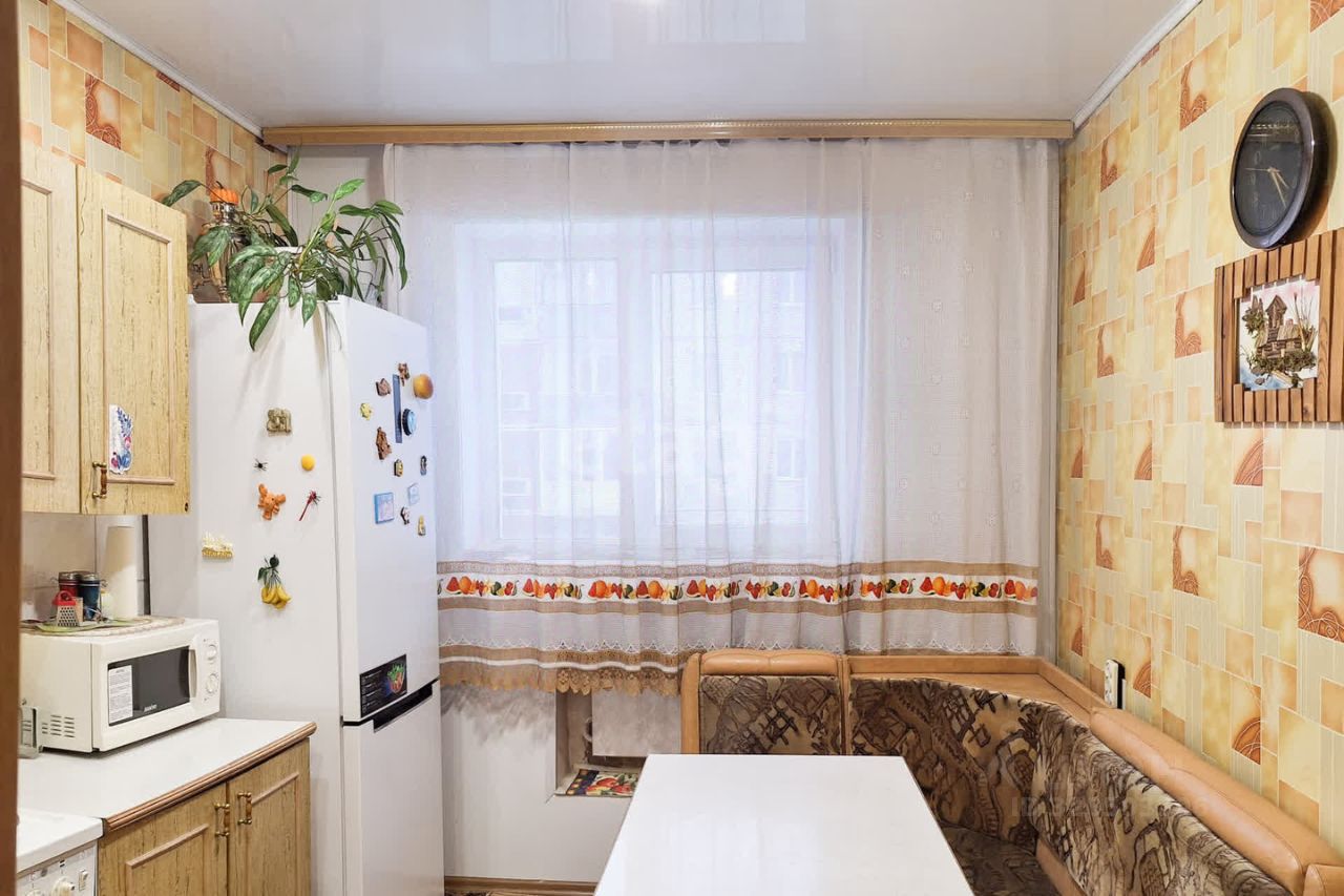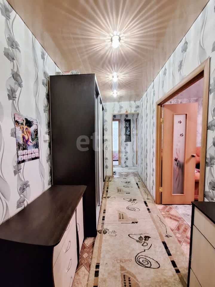 Просторная двухкомнатная квартира площадью 52,5 м² расположена на третьем этаже пятиэтажного дома в Полысаево. Удобная планировка включает изолированные комнаты, что обеспечивает комфортное проживание для семьи. Квартира находится в отличном состоянии: выполнен косметический ремонт, стены выровнены и оклеены светлыми обоями, полы покрыты линолеумом, установлены пластиковые окна. В санузле — раздельная ванная и туалет с качественной отделкой плиткой, натяжные потолки добавляют современности интерьеру.
