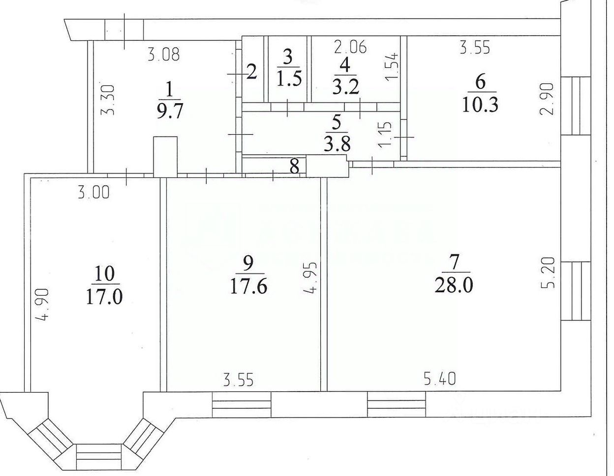 Высота потолка-3 м.