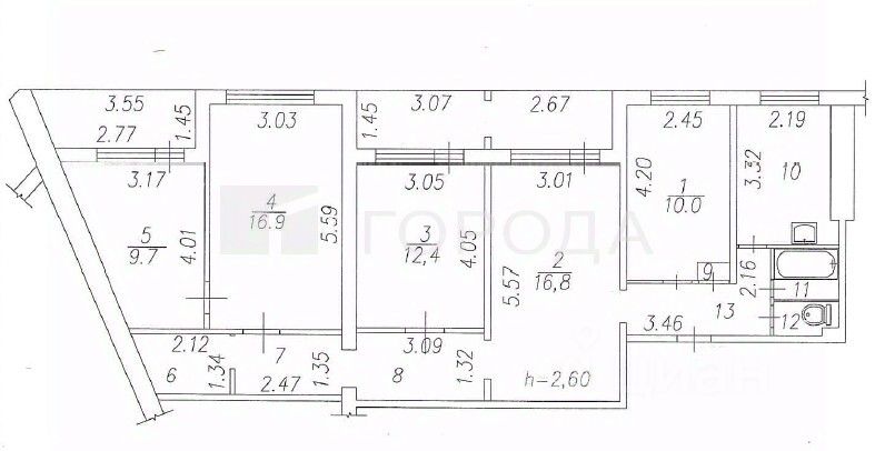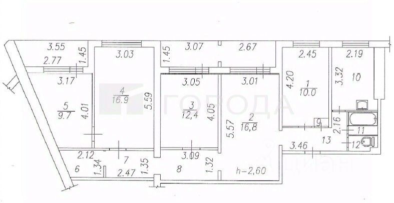 В квартире пять изолированных комнат с площадями 10, 16,8, 12,4, 16,9 и 9,7 кв. м соответственно. Две лоджии позволят вам наслаждаться видами на двор.