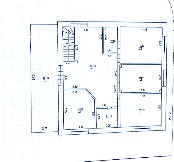2-й этаж: 4 комнаты, гостинная, санузел, подсобное помещение, балкон