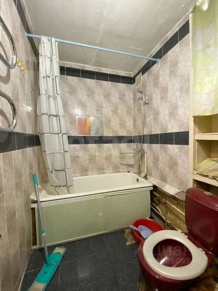 Сан узел совмещенный. На стенах и полу лежит плитка. Сантехника не меняна.