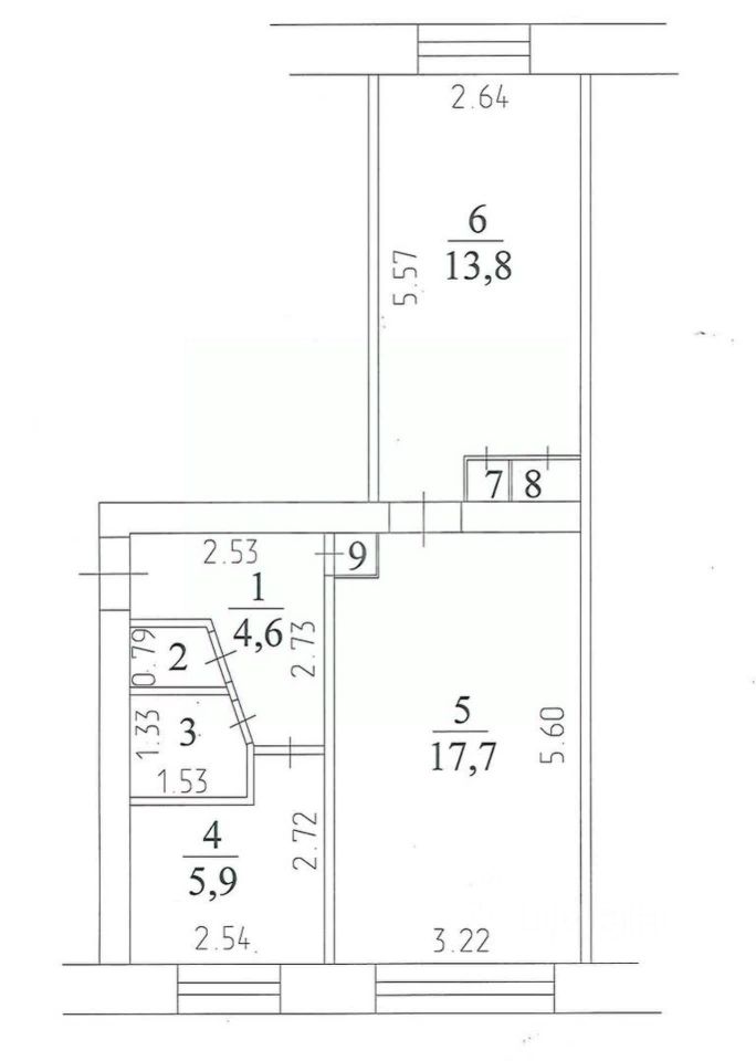 Квартира в обычном состоянии, окна выходят на две стороны, что обеспечивает хорошую проветриваемость помещения, планировка - малый трамвай. Две комнаты 17,7 и 13,8 кв. м, кухня - 5,9 кв. м. В шаговой доступности Гимназия 17, магазины, остановки общественного транспорта. Отремонтированная придомовая территория.