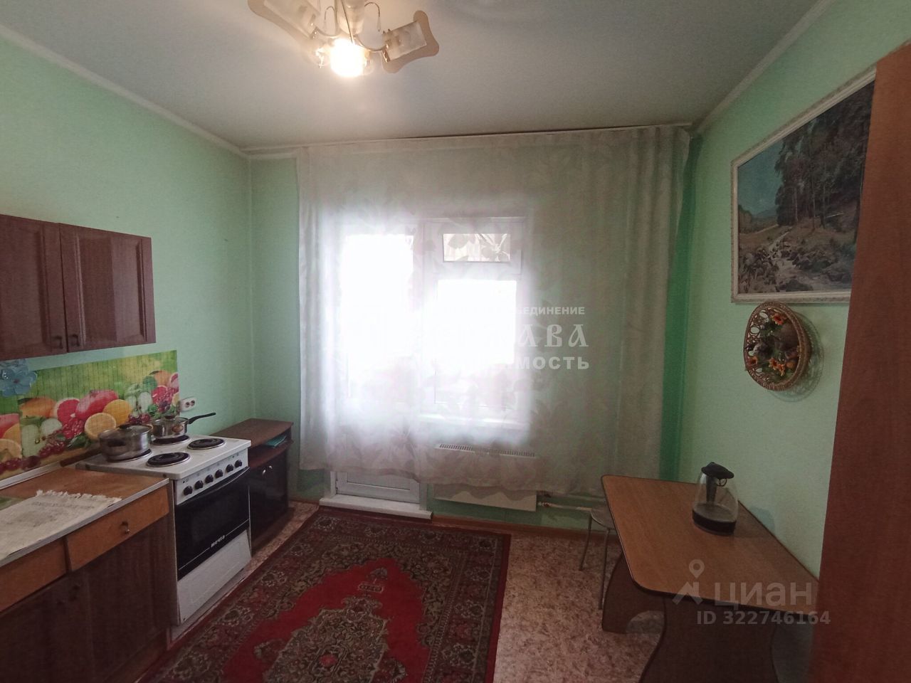 Площадь: общая ~ 33 кв.м., кухня — 9 кв.м.