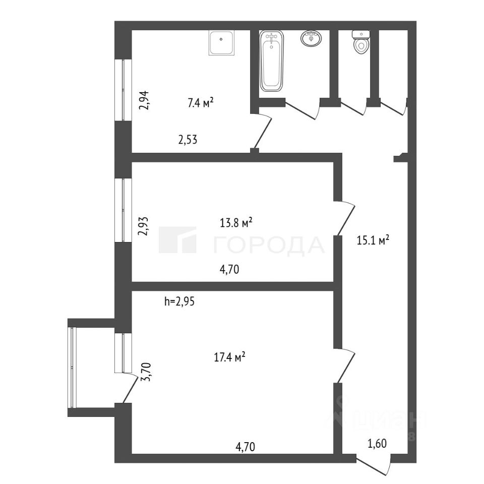 Квартира расположена на третьем этаже пятиэтажного блочного дома 1957 года постройки. Комнаты изолированы, окна выходят на придомовую территорию. Жилая площадь составляет 32 кв. м, площадь кухни — 7 кв. м. В квартире выполнен косметический ремонт, что позволит новым владельцам сразу заселиться или при желании обновить интерьер по своему вкусу.