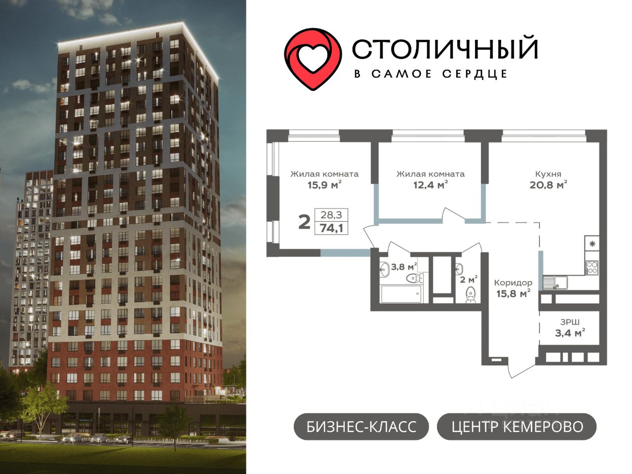Не подходите под семейную ипотеку? СТАВКА 13,9% ДЛЯ ВСЕХ на весь срок. А первый взнос от 20%! Звоните, поможем определиться с выбором квартиры, подберем самую выгодную программу кредитования и подготовим предварительный расчёт платежей. ---------------------------------------------- ЖК ''Столичный'' — ваше пространство для жизни, развития и отдыха. Всего 5 домов от 25 до 28 этажей. Благодаря панорамному остеклению в квартирах много света и открываются захватывающие панорамные виды на реку Томь, Красное озеро и Московскую площадь. Отделка квартир White box (ровная стяжка пола с шумоизоляцией, улучшенная штукатурка стен, разводка электрики по квартире, межкомнатные перегородки, горизонтальная разводка отопления в полу). Двухуровневый паркинг на -1 и 1 этаже с собственным автомоечным комплексом. Закрытая территория — ваш личный оазис безопасности и комфорта, где нет места для машин. Просторный двор — зона для отдыха и общения, где каждый найдет себе занятие по душе: от современных игровых комплексов до спортивных площадок, окруженных зеленью и ландшафтным дизайном. Ресепшен с консьерж-обслуживанием, куда вы можете обратиться для решения различных бытовых вопросов. Круглосуточный пост охраны на территории жилого комплекса. Премиум фитнес-клуб World Class на территории комплекса — просторные тренажерные залы, бассейны для взрослых и детей, зоны функционального тренинга, SPA-салон. Инфраструктура уже 9 баллов из 10 — здесь расположены детские сады, школа, в пешей доступности торговые центры, крупные спортивные объекты ледовый дворец ''Кузбасс'', спорткомплекс ''Кузбасс-Арена''. ---------------------------------------------- Успейте приобрести квартиру по самым низким стартовым ценам! Напишите в чат - ответим на все ваши вопросы!