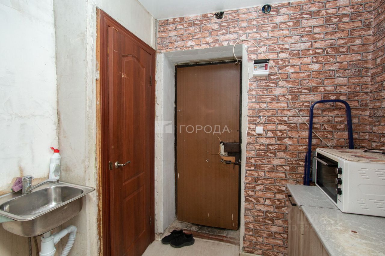 Общая площадь — 17,6 кв. м, из которых 12,7 кв. м приходится на жилую площадь, а 4 кв. м — на кухню.