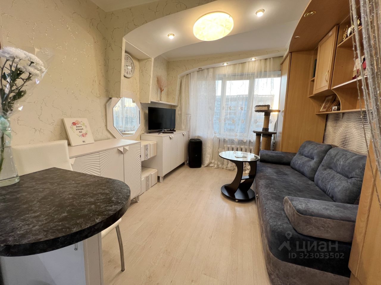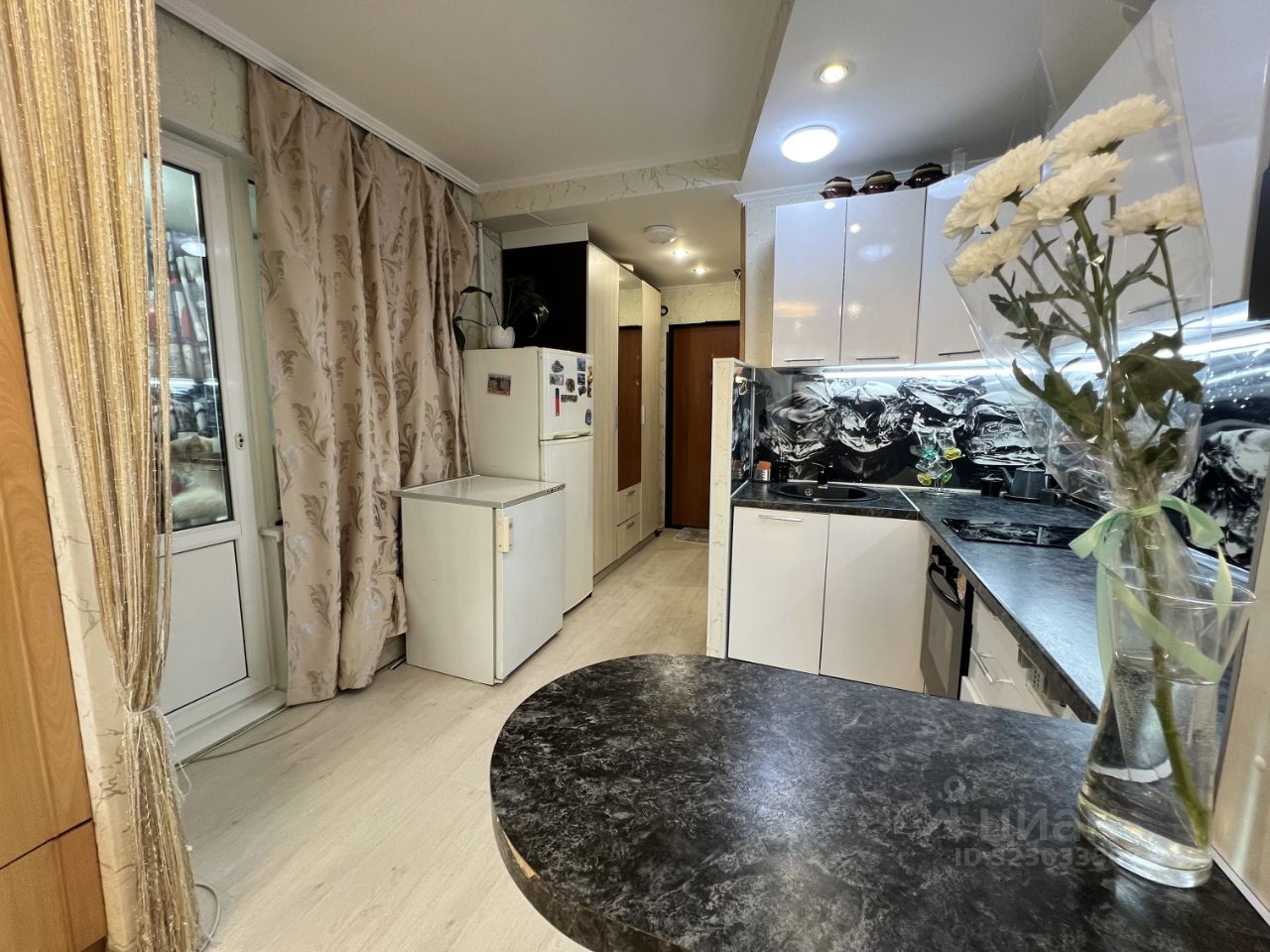 Ремонт: стеклопакет, кафель от пола до потолка в совмещенном сан.узле, ламинат на полу поверх бетонной стяжки стальная входная дверь, установлены счетчики горячей и холодной воды.