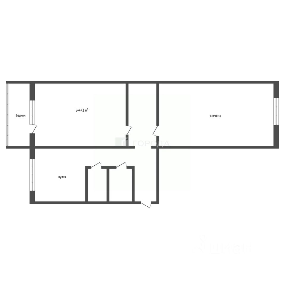 Общая площадь 47 кв м, планировка ''распашонка'', т.е. окна выходят на обе стороны дома. Плюсы такой планировки: равномерное распределение солнечного света, возможность сквозного проветривания, варианты расположение зала и спальни на усмотрение собственников.