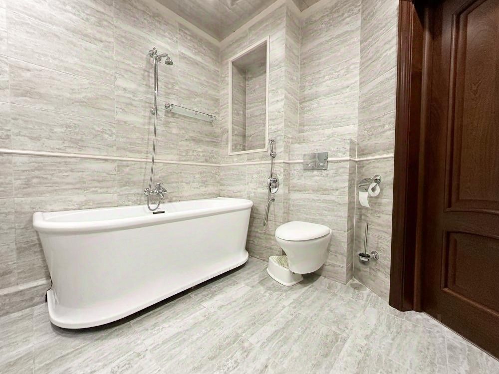 В ванной - плитка из коллекции Kerama Marazzi, сантехника Jakob Delafon.