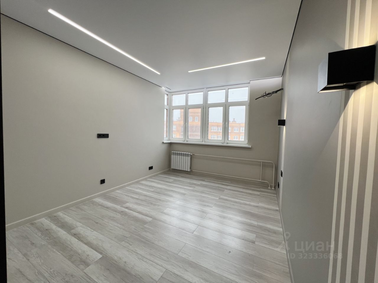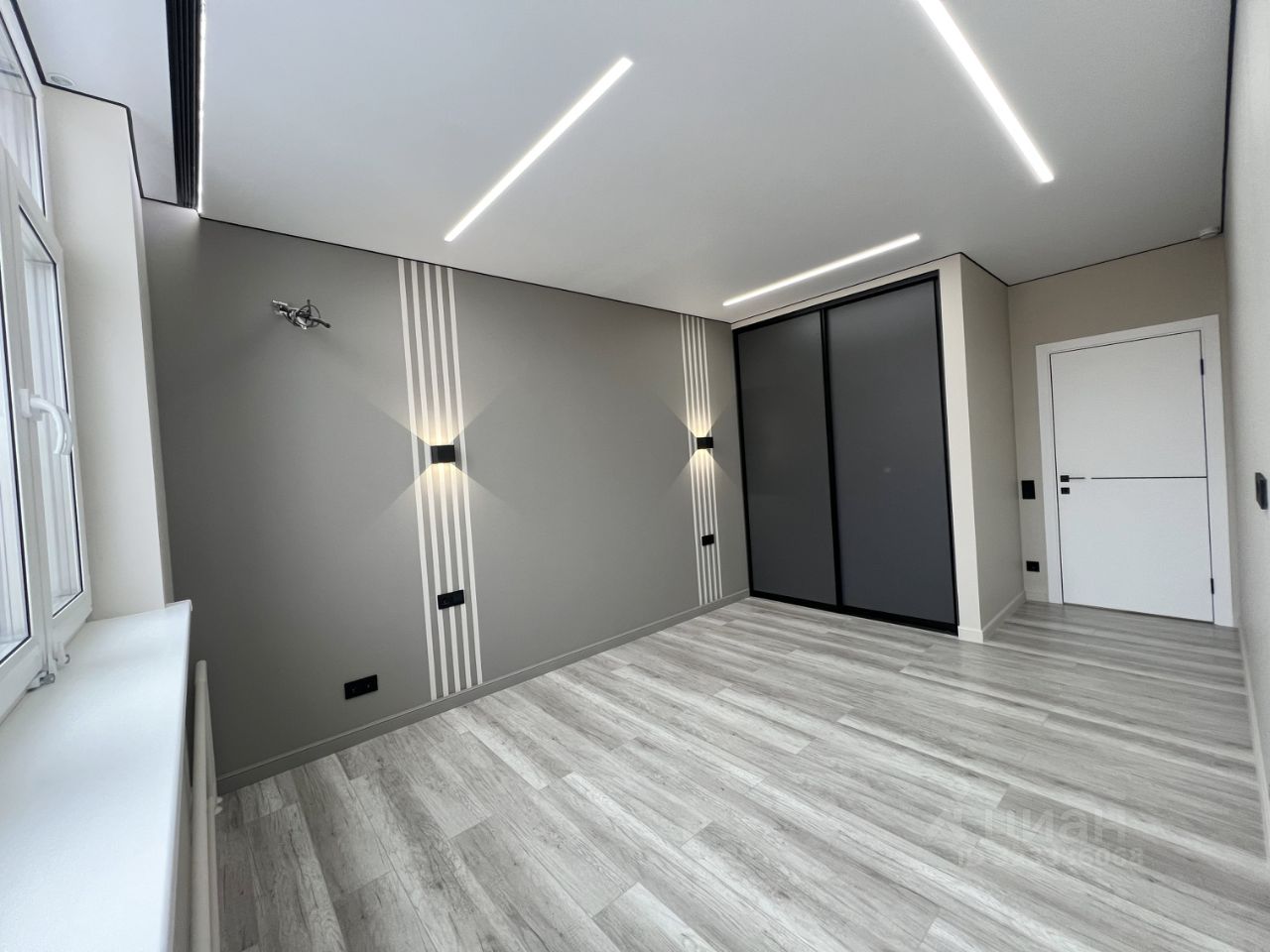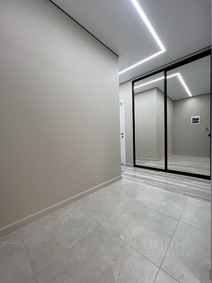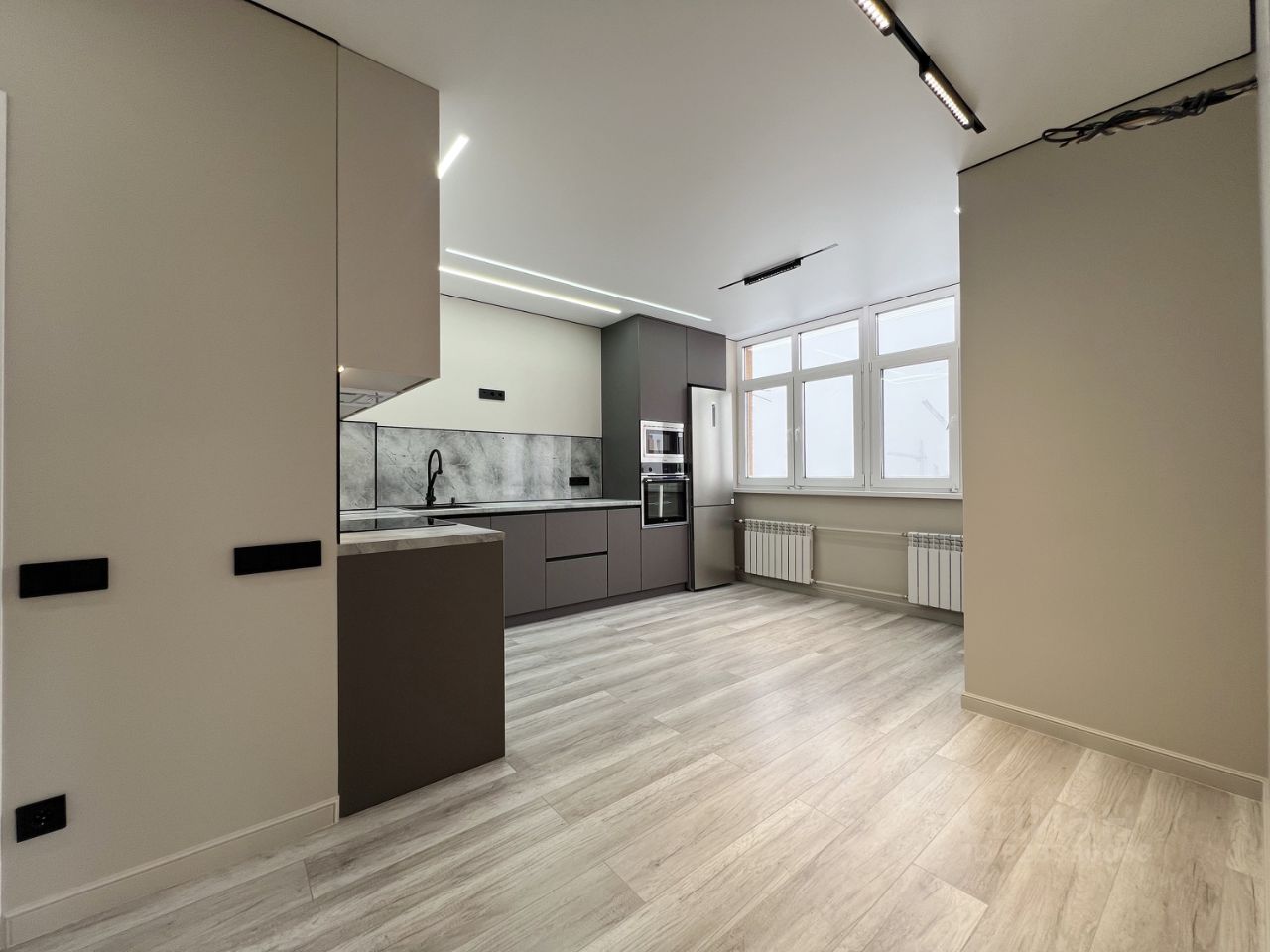 • стены выровнены под маяки, натяжной потолок с встроенным освещением,