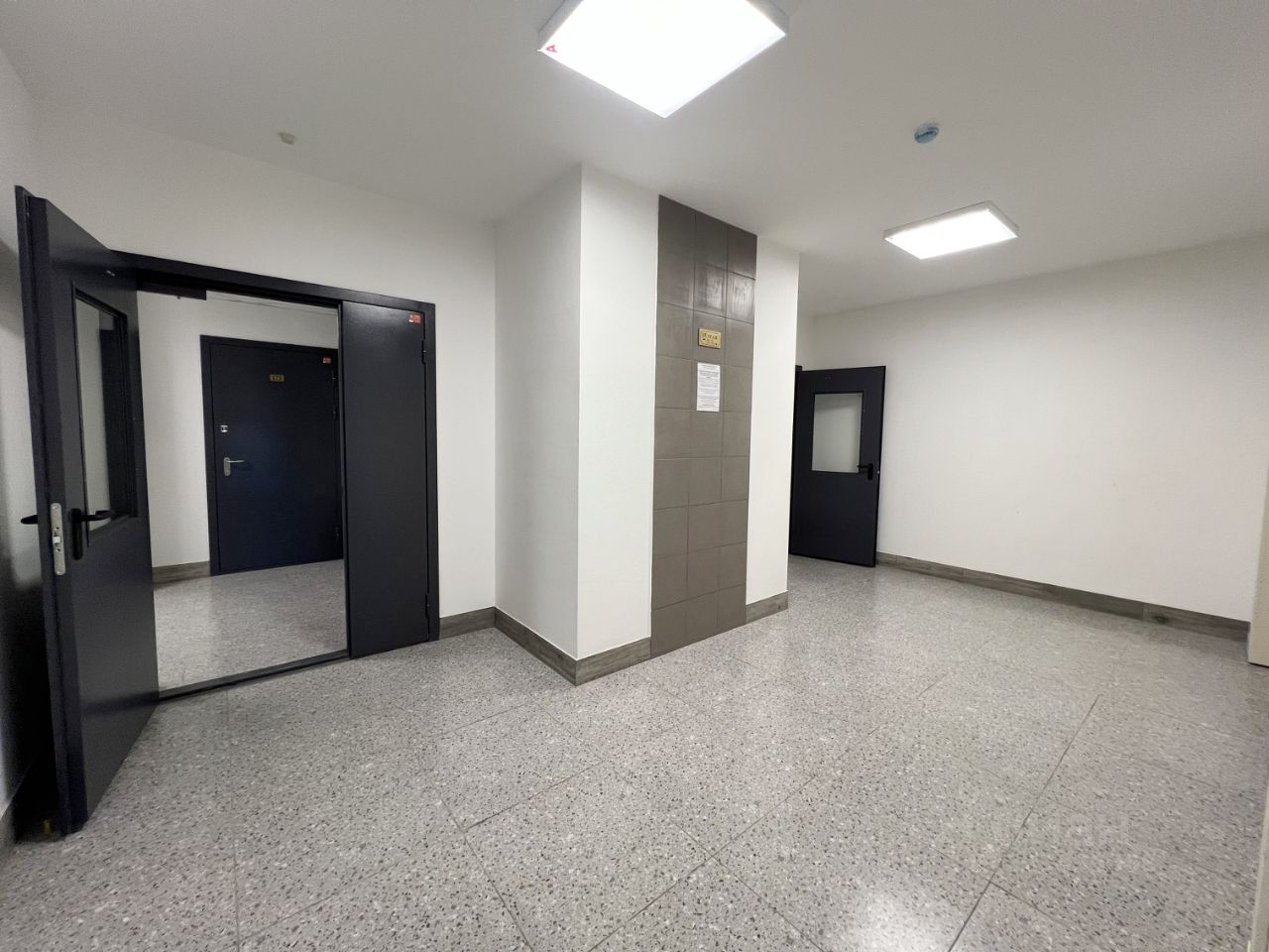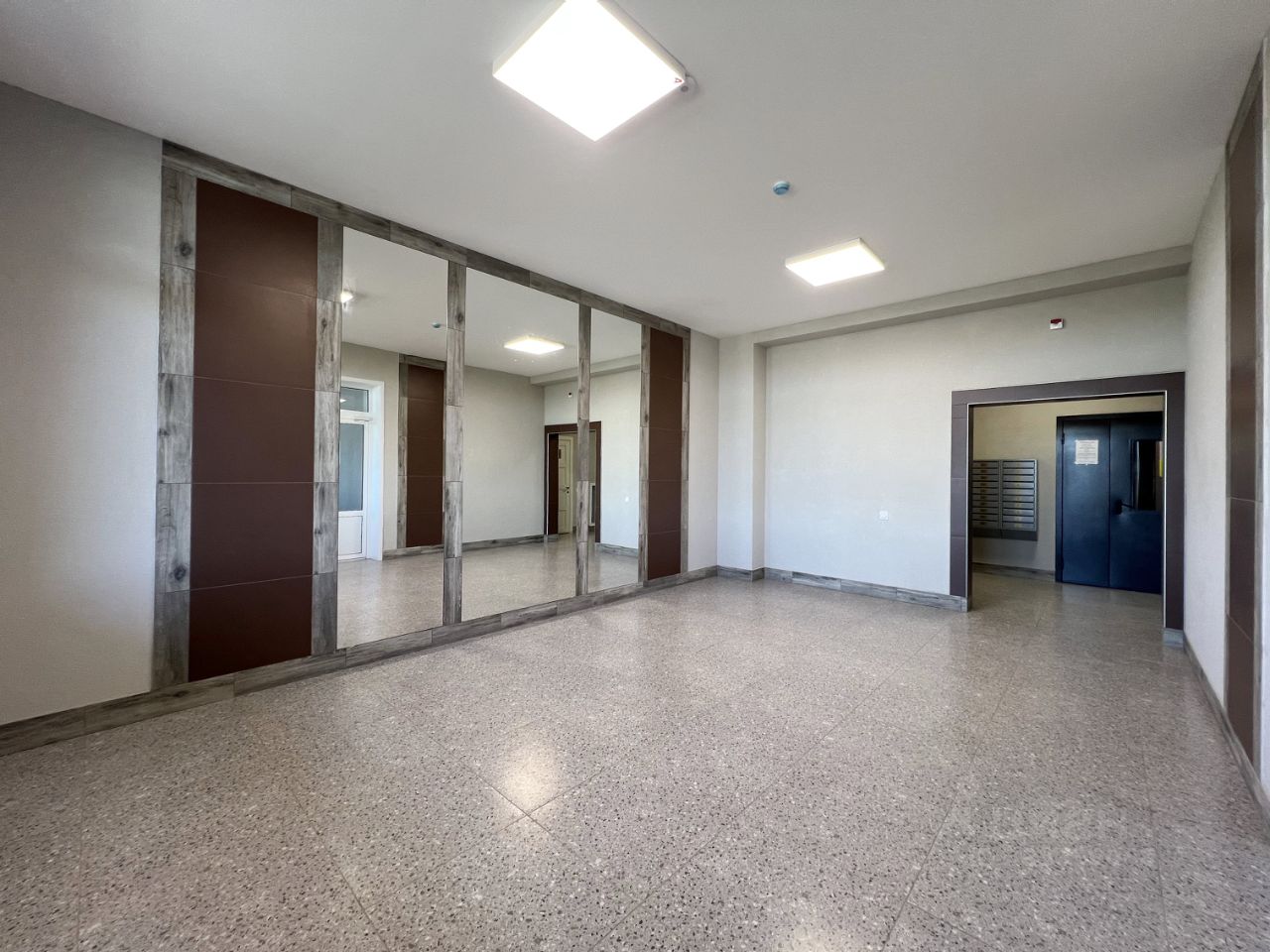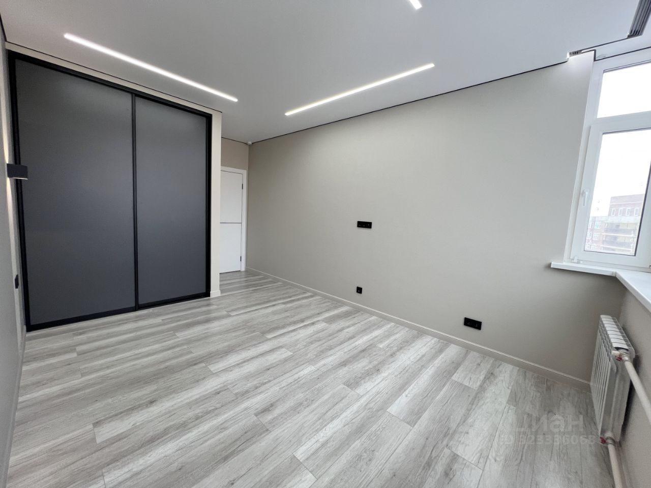 • стены выровнены под маяки, натяжной потолок с встроенным освещением,