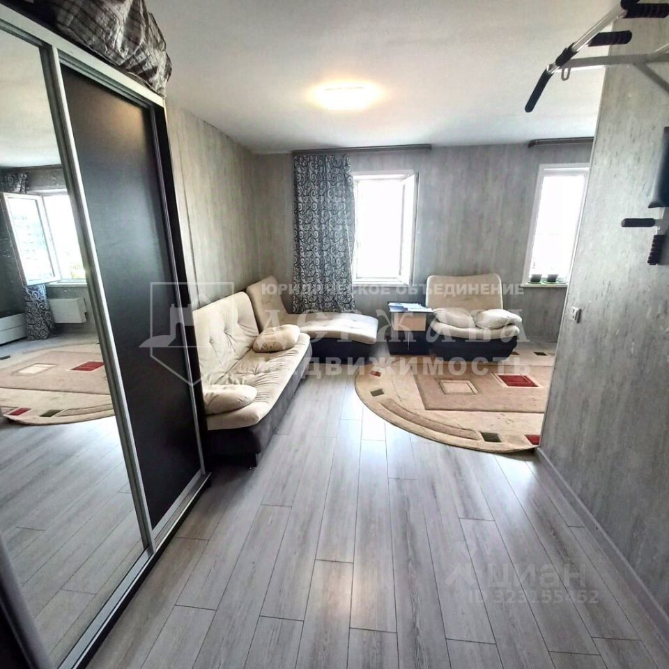 В квартире выполнен ремонт. Установлены пластиковые стеклопакеты, на полу ламинат, выровнены стены, современные обои. Планировка квартиры позволяет разделить пространство на две комнаты.