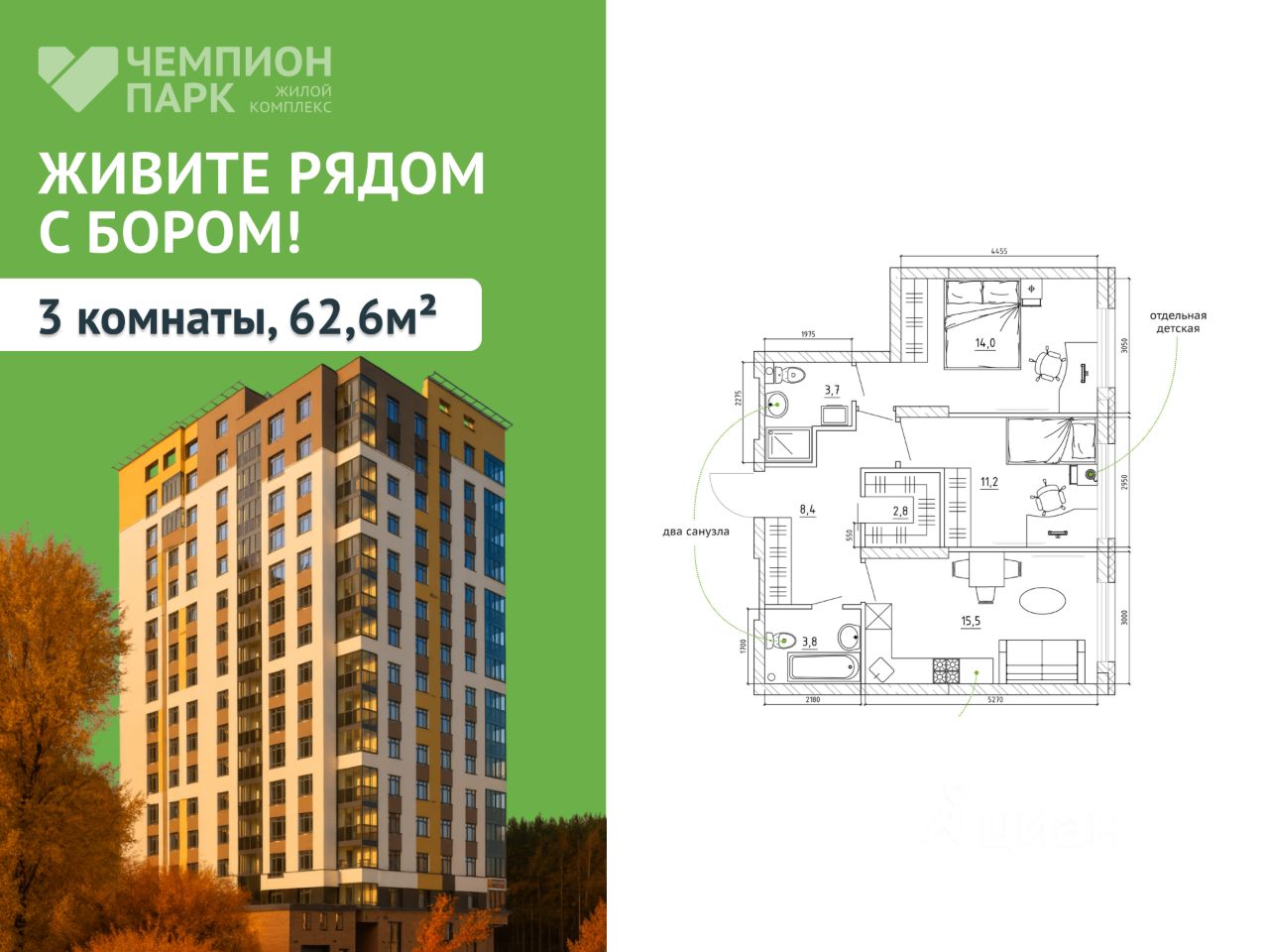 Продажа квартиры НАПРЯМУЮ ОТ ЗАСТРОЙЩИКА в ЖК Чемпион парк ДО КОНЦА МЕСЯЦА ДЕЙСТВУЮТ АКЦИИ: СКИДКА НА ПОКУПКУ КВАРТИР 5%, ИПОТЕЧНЫЕ КАНИКУЛЫ (БЕРЕМ ПЛАТЕЖИ ПО ИПОТЕКЕ НА СЕБЯ НА СРОК ДО 12 МЕСЯЦЕВ), 2 ГОДА СЕРВИСА В ПОДАРОК И ДРУГИЕ ПРЕДЛОЖЕНИЯ! Болеe подpобную информацию менеджер предоставит по телефону! Звоните! ЖК Чемпион парк - это жилая среда для целеустремленных и уверенных людей, которые выбирают городской комфорт и динамичный образ жизни. Адрес: Институтская, 32 Преимущества: Закрытая внутренняя территория Дизайнерская отделка подъездов Подземный паркинг с лифтом Ивент-комната, фитнес для жителей Школы и детские сады рядом с домом 5 минут до торговых центров ''Радуга'', ''РИО'', ''Север'' СВОБОДНАЯ ПЛАНИРОВКА И С ВИДОМ НА БОР Удобные способы покупки: