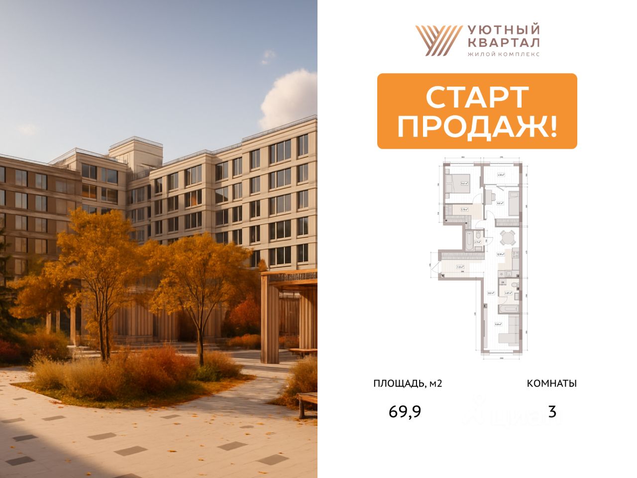 СТАРТ ПРОДАЖ В ДОМЕ 3! Группа компаний ''Атмосфера'' объявляет о скором старте продаж в новом доме 3 в рамках масштабного проекта комфорт-класса ''Уютный квартал''. Это уникальный шанс забронировать квартиру по выгодным стартовым ценам. О проекте: ЖК ''Уютный квартал'' — первый проект комплексной застройки в формирующемся новом центре города, реализованный в концепции ''город-сад''. Жителей ждут благоустроенные общественные пространства, зоны для прогулок и отдыха, современная инфраструктура для семьи и детей. Особенности новой очереди (Дом 3): Архитектура: 5 секций переменной этажности (от 5 до 15 этажей). Квартиры: от 23,5 до 114,2 м². Отделка на выбор — под самоотделку, ''white box'', ''комфорт'', ''комфорт плюс''. Эксклюзивные планировки: пентхаусы на последних этажах с потолками 3,5 м и застекленными террасами. Двор: закрытый внутренний двор без машин с современными детскими площадками. Комфорт: панорамные окна, премиальная отделка мест общего пользования (МОП). Инфраструктура для жителей: подземный паркинг с лифтом, кладовые помещения. Инфраструктура и благоустройство (для всего ЖК): Для отдыха: 2 фонтана, арт-объекты, подвесные гамаки, качели. Для спорта: всесезонный футбольный манеж, площадки для баскетбола и волейбола, воркаут-зоны, площадка для йоги, 3,5 км велодорожек. Для детей: игровые площадки разных возрастных категорий, зимняя горка, каток. Для прогулок: более 10 км пешеходных дорожек. Ивент-беседка для проведения праздников. Уже работает в первых очередях: Супермаркет, аптека, пиццерия, кофейня, детский центр. Фитнес-рум, комната для детских праздников. Подкаст-рум с функцией семейного кинотеатра, VR-рум Круглосуточная служба безопасности с более чем 1000 видеокамер. Преимущества локации: Детский сад на 300 мест. Современная школа с блоком школы искусств Спа центр Остановка трамвая в шаговой доступности. Способы покупки: • Ипотека от ведущих банков. • Военная ипотека. • Рассрочка. • Trade-in. • Материнский капитал. • Государственные субсидии и сертификаты. Все подробности о покупке квартиры можно узнать у менеджера отдела продаж по телефону +7 (3842) 67-09-98 или на сайте. Успейте стать частью ''Уютного квартала'' — пространства, где уют, комфорт и современная инфраструктура соединяются для вашей новой счастливой жизни!