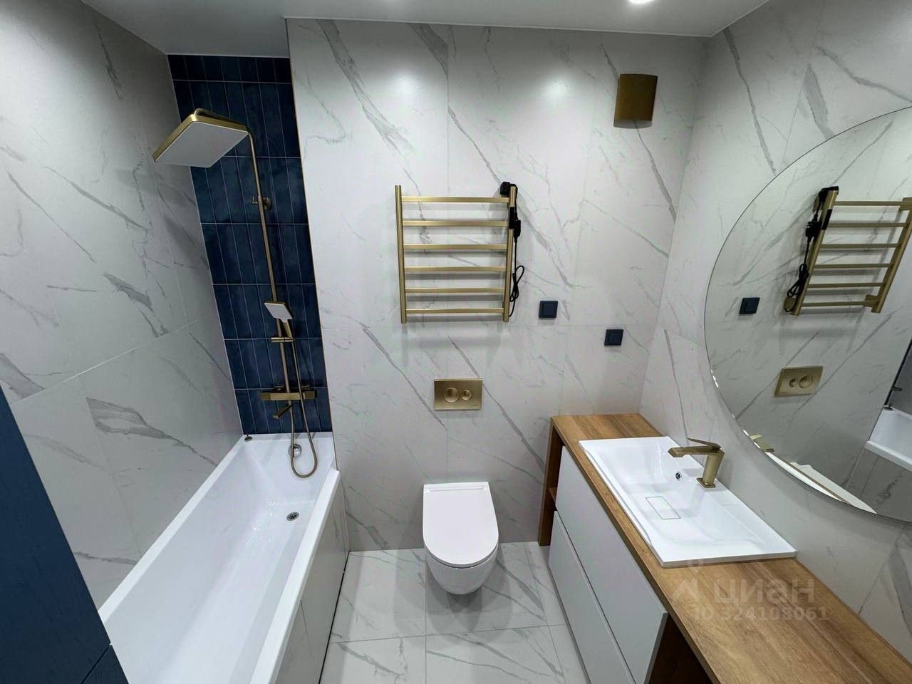 Санузел совмещенный, в отделке широкоформатный керамогранит, в ванной комнате зеркало и умывальник ''под ключ'',специально подготовленное место для стиральной машины. Межкомнатные двери с магнитными замками. Централизованная система приточной вентиляции.