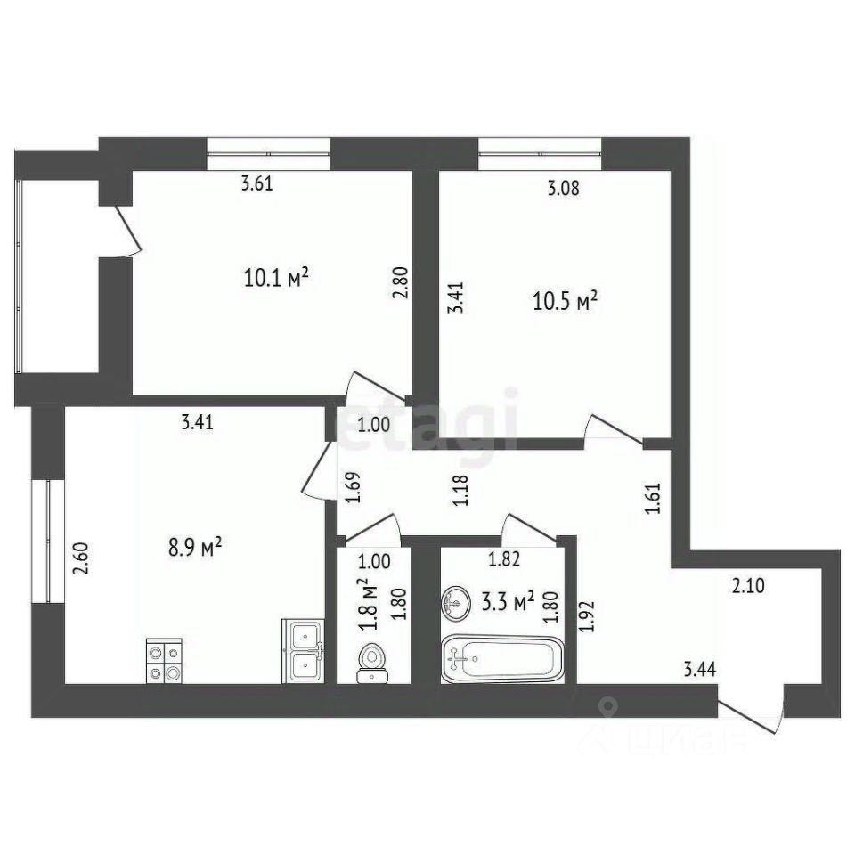 Планировка удачно продумана , комнаты квадратные-идеально для размещения мебели. 2 спальни и кухня гостиная , раздельный сан.узел, Есть балкон!