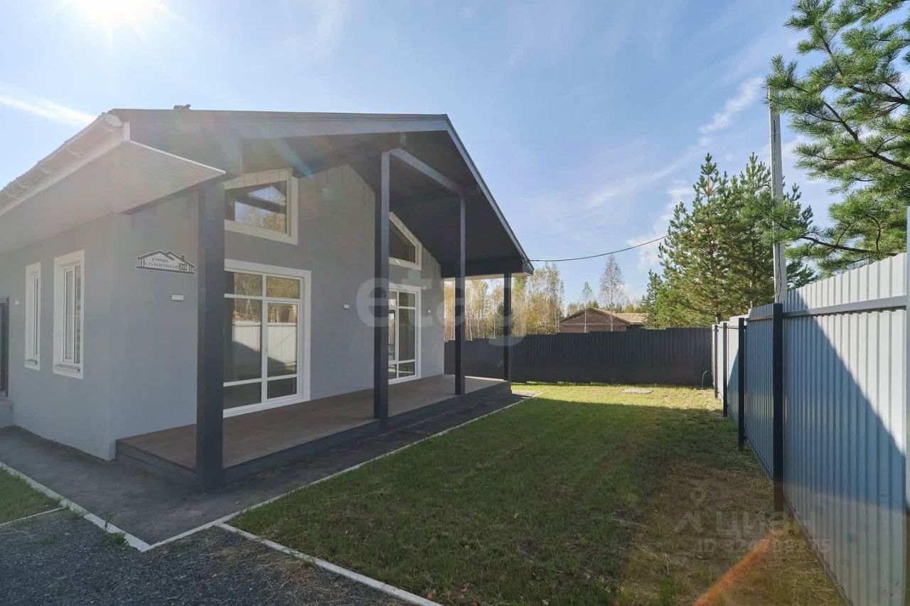 Продам современный, теплый и уютный дом на одном этаже, построенный с использованием высококачественных материалов. Это идеальное место для комфортной жизни вашей семьи! **Основные характеристики:** - Стены из газобетона D500 и перегородки из газобетона B200/150 с утеплением фасадной ватой Эковер. Декоративная штукатурка и фасадная краска Тиккурила придают дому стильный и современный вид. - Просторная кухня-гостиная с вторым светом, три уютные спальни, одна из которых — мастер-спальня с собственным санузлом. Также предусмотрен отдельный санузел и коридор с местом под шкаф. - Котельная с мини-котлом на электричестве, а также подготовка под газовое отопление — газификация запланирована на 2025-2026 годы. - Просторная терраса для приятных вечеров на свежем воздухе.