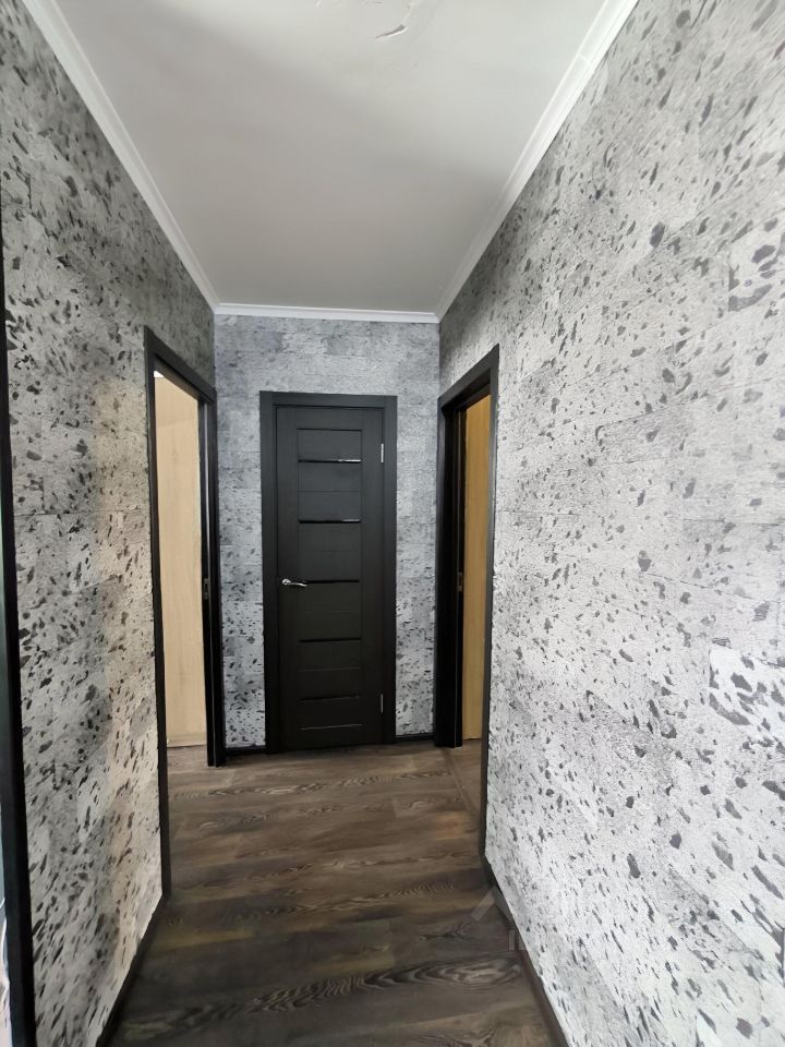 Пол залит по уровню, линолеум. Качественные входные и межкомнатные двери. На стенах обои, стены выровнены. Комнаты разделены гардеробной. Ванна и санузел - выложены кафелем.