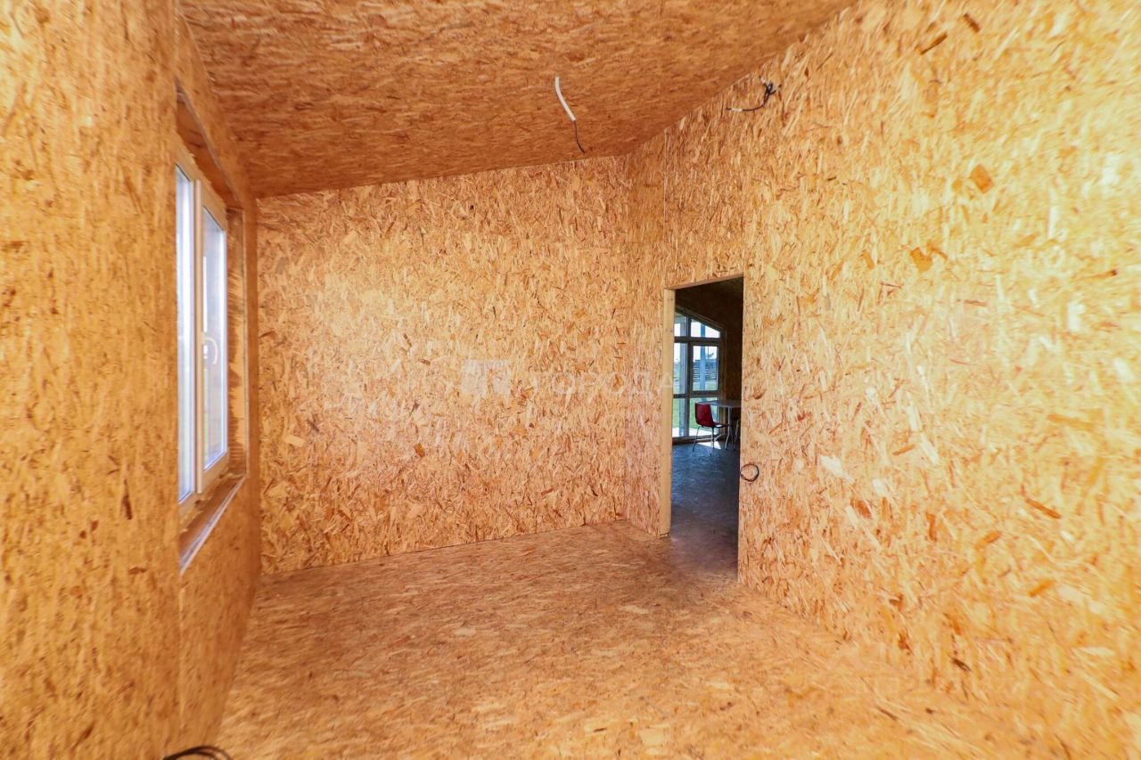 Дом каркасно-панельный. На крыше металлочерепица. Окна пластиковые. Внутри дом без отделки. Входная дверь пластиковая