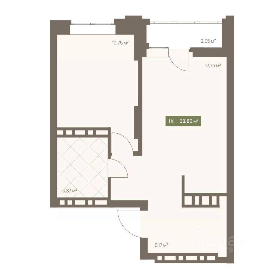 Общая площадь38,8 м2