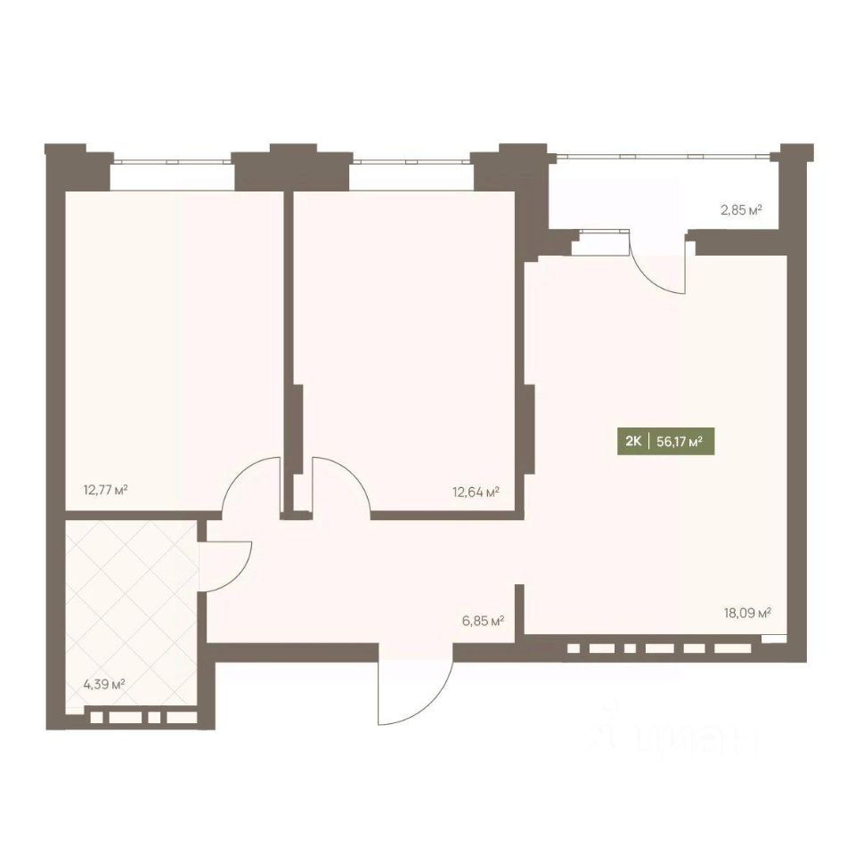 Общая площадь56,17 м2