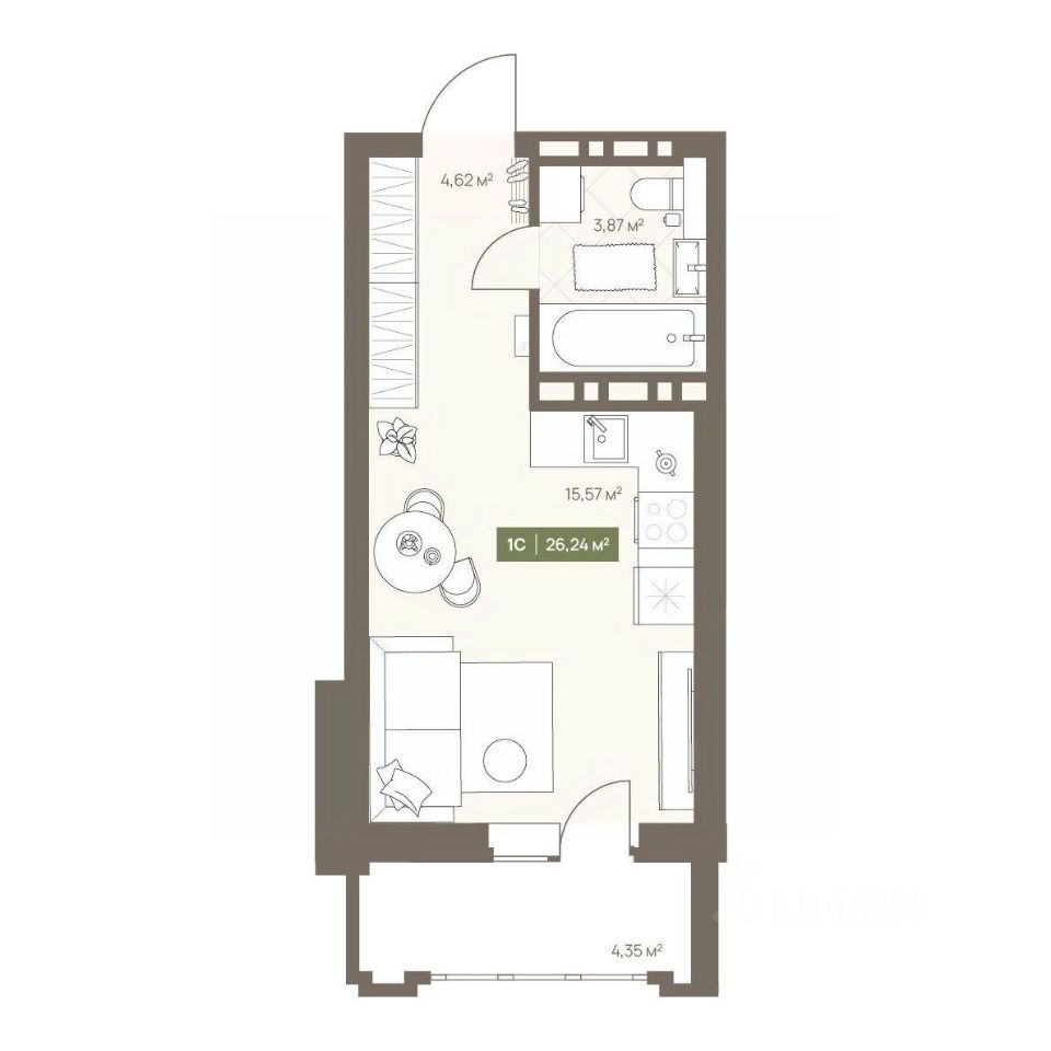 Общая площадь26,24 м2