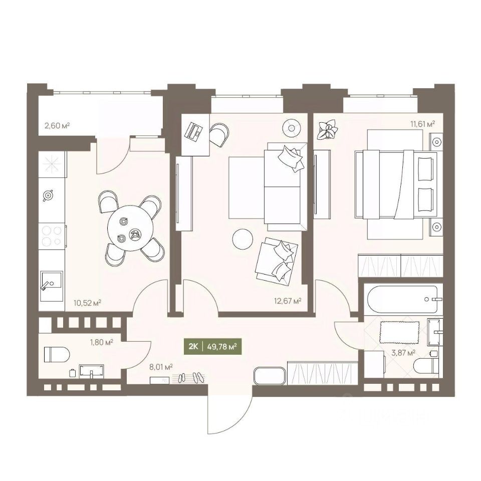 Общая площадь49,78 м2