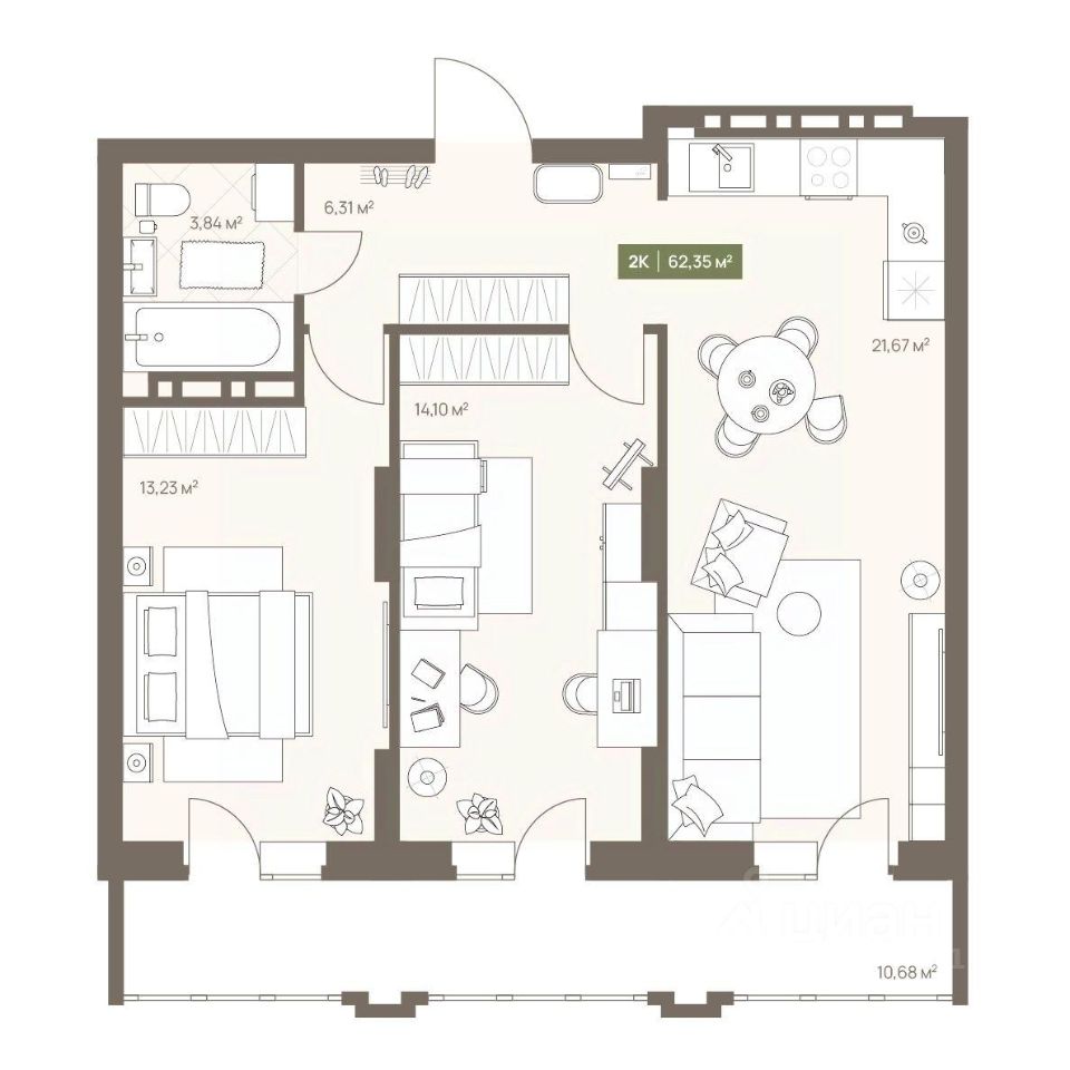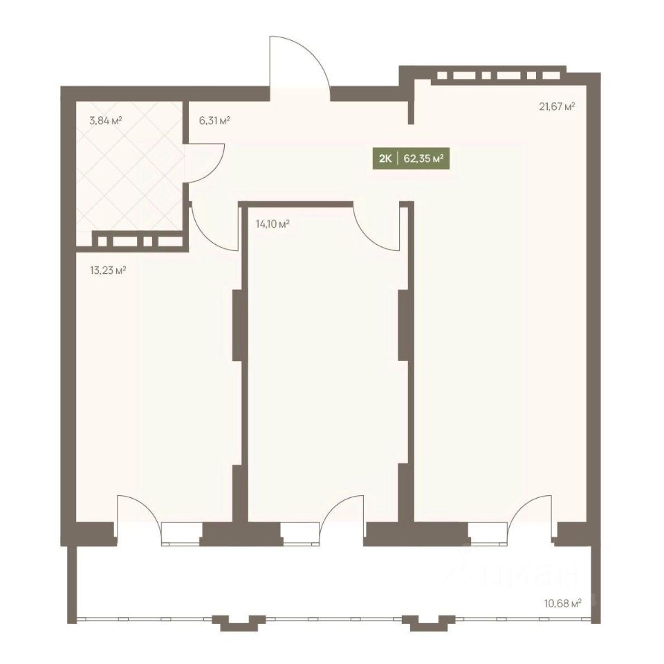 Общая площадь62,35 м2