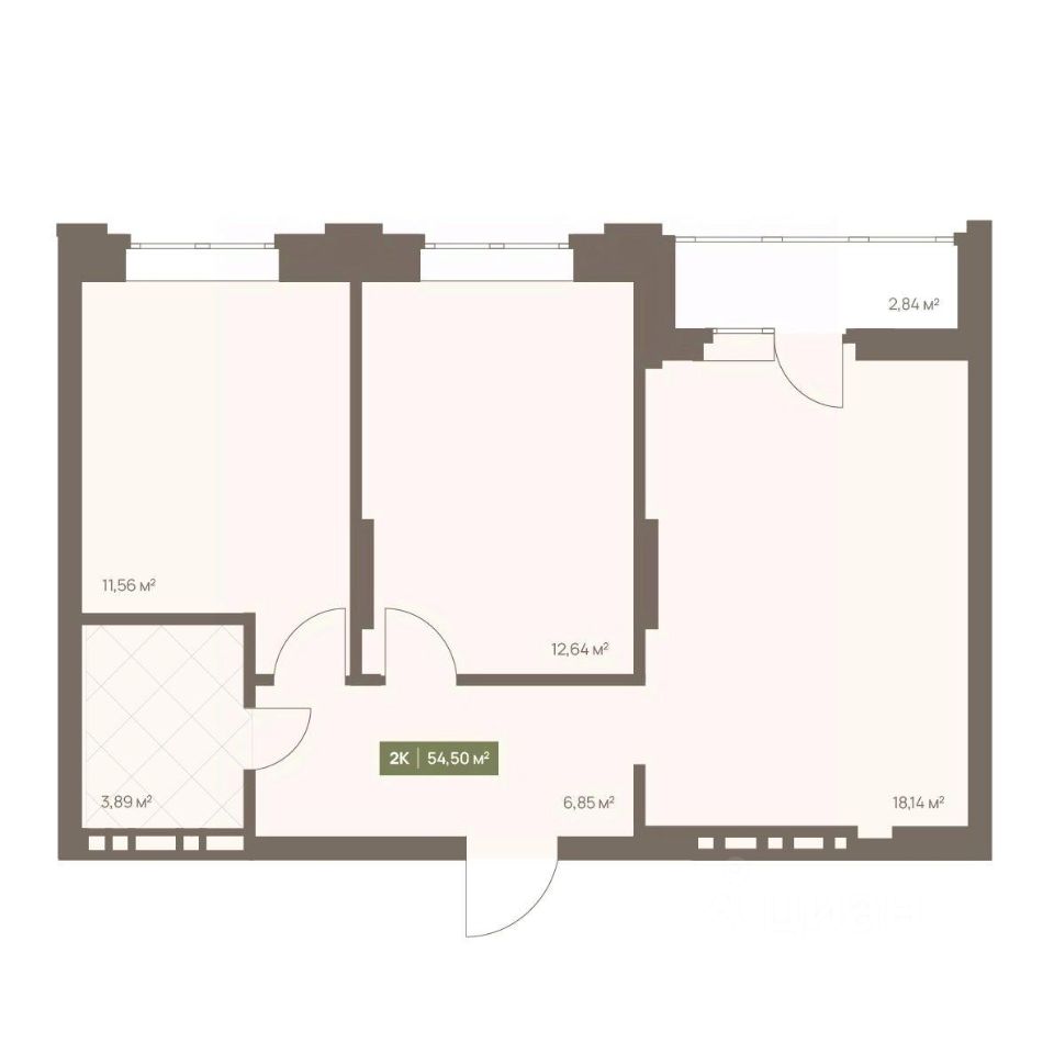 Общая площадь54,5 м2