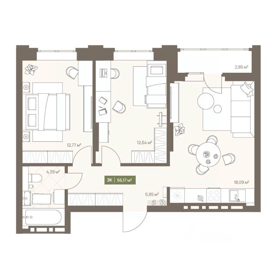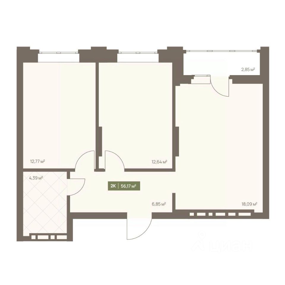 Общая площадь56,17 м2