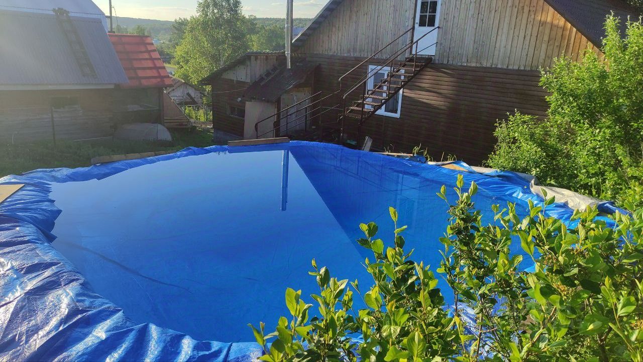 Инфраструктура мечты: На территории уже есть гараж, русская баня 3x6 м, летний бассейн 6x6 м и плодоносящий сад (яблони, ягоды). Не нужно ничего строить — можно сразу наслаждаться жизнью.