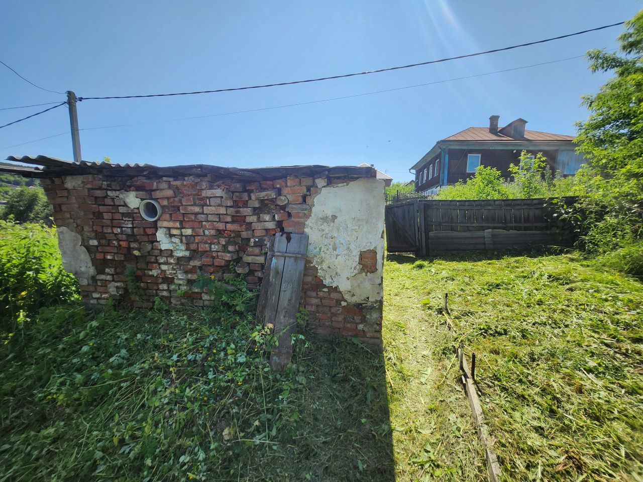 Перед домом углярка, есть возможность подъезда для разгрузки. Есть хоз. постройки.