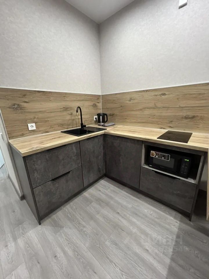 В квартире есть все необходимое для комфортного проживания: современная мебель на кухне и в комнате, а также техника — холодильник, микроволновая печь, телевизор и стиральная машина. Санузел совмещенный, оборудован ванной. Благодаря продуманной планировке, пространство максимально эффективно используется.