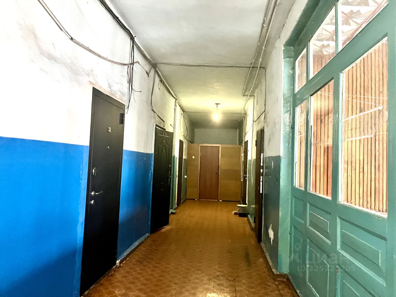 Комната расположена на втором этаже 3-этажного кирпичного жилого дома.