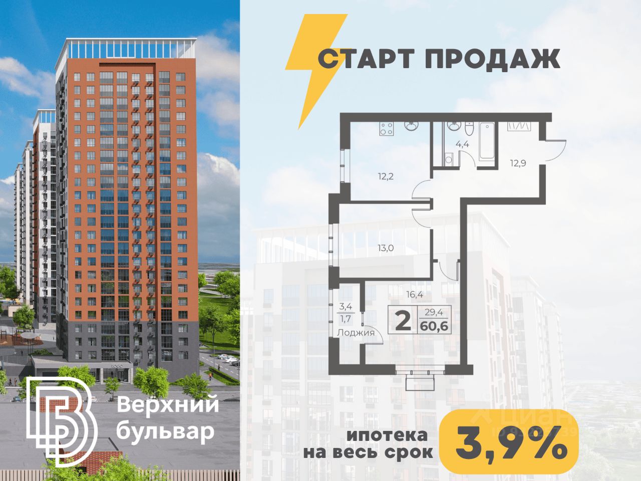 ЖИЛОЙ ДОМ БУЛЬВАР СТРОИТЕЛЕЙ, 62 КОРПУС 1 !!! СЕМЕЙНАЯ ИПОТЕКА ОТ 3,9%. Не подходите под семейную ипотеку? СТАВКА 13,9% ДЛЯ ВСЕХ на весь срок. А первый взнос от 20%! Звоните, поможем определиться с выбором квартиры, подберем самую выгодную программу кредитования и подготовим предварительный расчёт платежей. Современный монолитнокирпичный дом, где комфорт и функциональность продуманы до мелочей. Архитектурное решение сочетает надёжность монолитного каркаса и эстетику кирпичной кладки. Особая фишка проекта — закрытая дворовая территория на стилобате, что обеспечивает тишину, безопасность и обособленность пространства от уличного трафика. Основные характеристики: - 23 этажа (22 жилых),