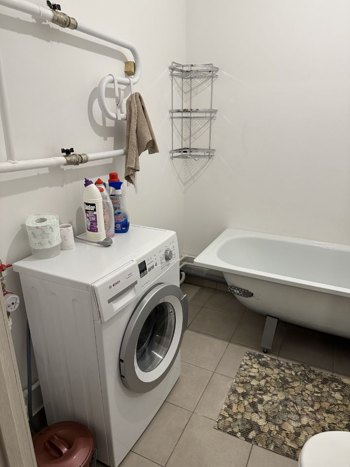 В квартире есть всё необходимое: • Мебель: кровать, шкаф, диван, стол. • Техника: холодильник, микроволновая печь, стиральная машина, роутер (можно подключить свой интернет) • Прихожая: выделенная зона для верхней одежды и обуви. Так же в квартире располагается просторный балкон.