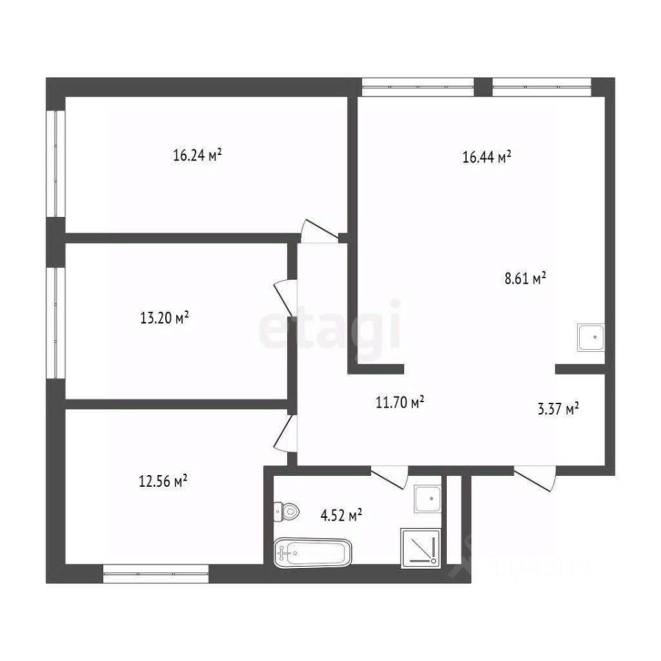 Квартира выполнена в современном стиле с продуманной планировкой: - просторная кухня-гостиная с двумя окнами, - три изолированные спальни и современный санузел. Большие окна обеспечивают хорошее естественное освещение.