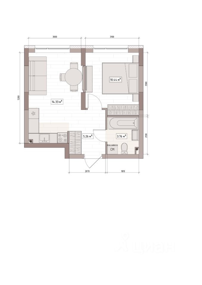 Общая площадь35 м2