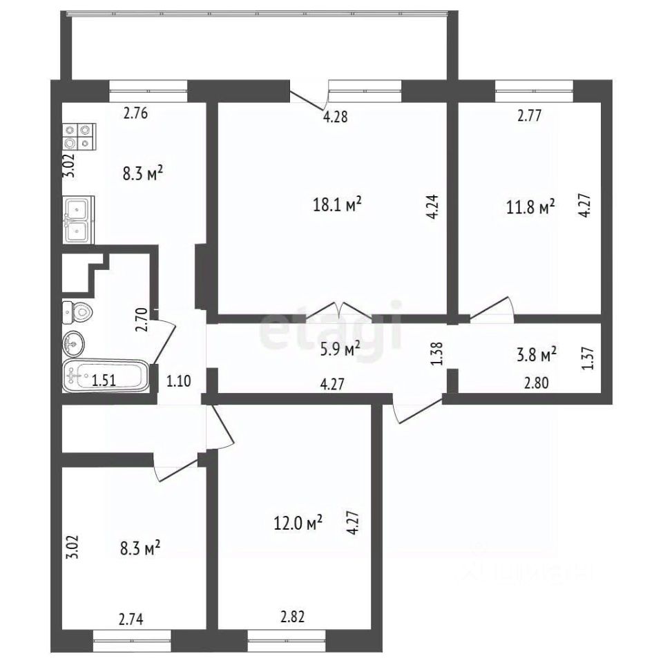 Санузел совмещён, перепланировка узаконена, все документы в порядке.