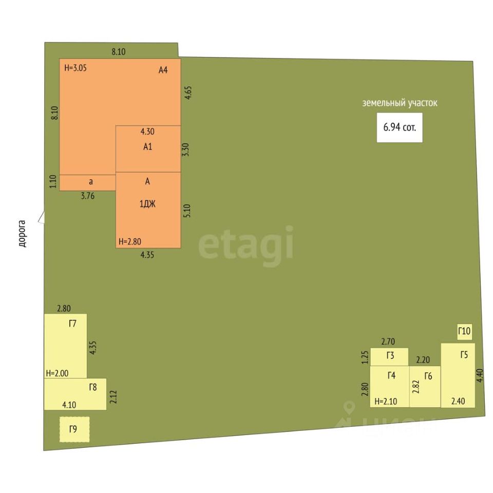 На участке расположен гараж,баня,хоз.постройки.